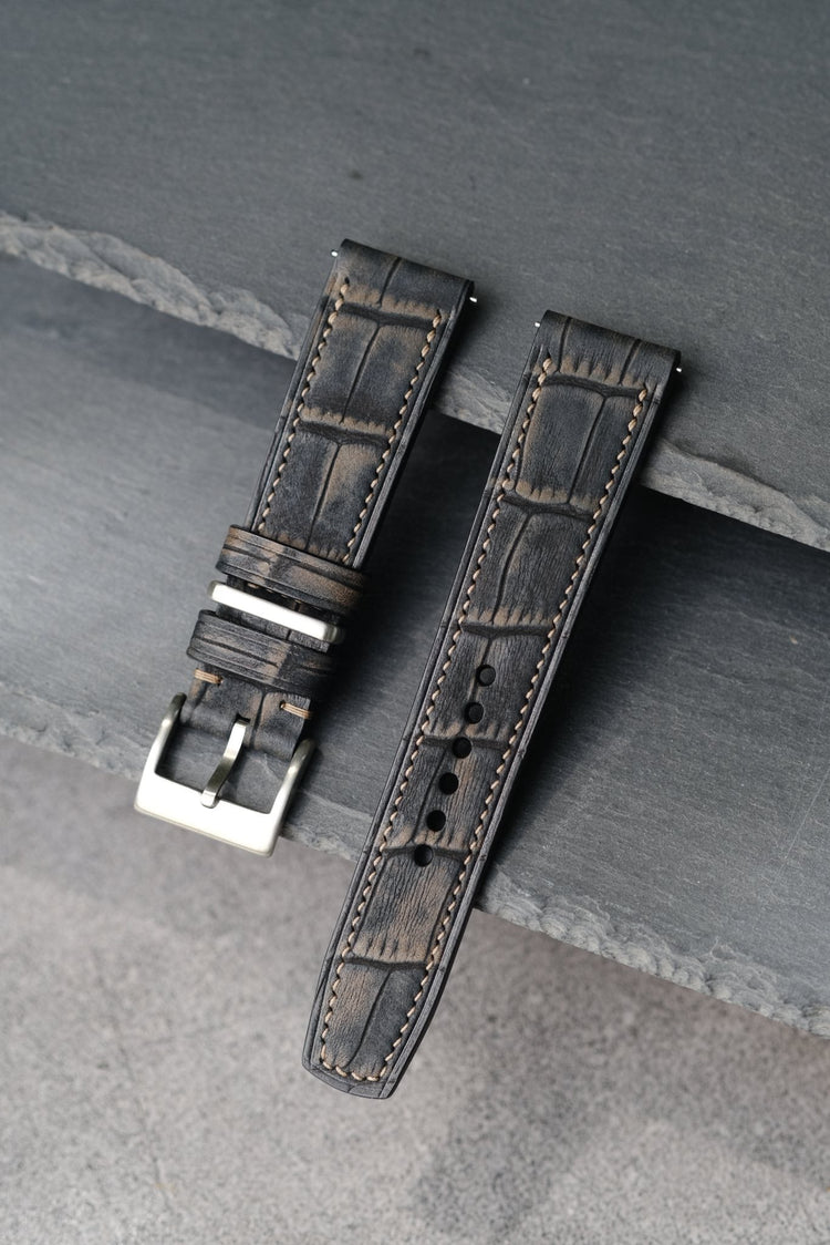 Monaco Alligator-kollektionen är raffinerad och djärv, skapad för dig som vill ge din klocka en känsla av ren elegans. Varje armband bär sitt präglade alligatormönster som om det hade en egen historia — en subtil glans som fångar ljuset och framhäver skalornas djup, som om lädret format av tid och precision.