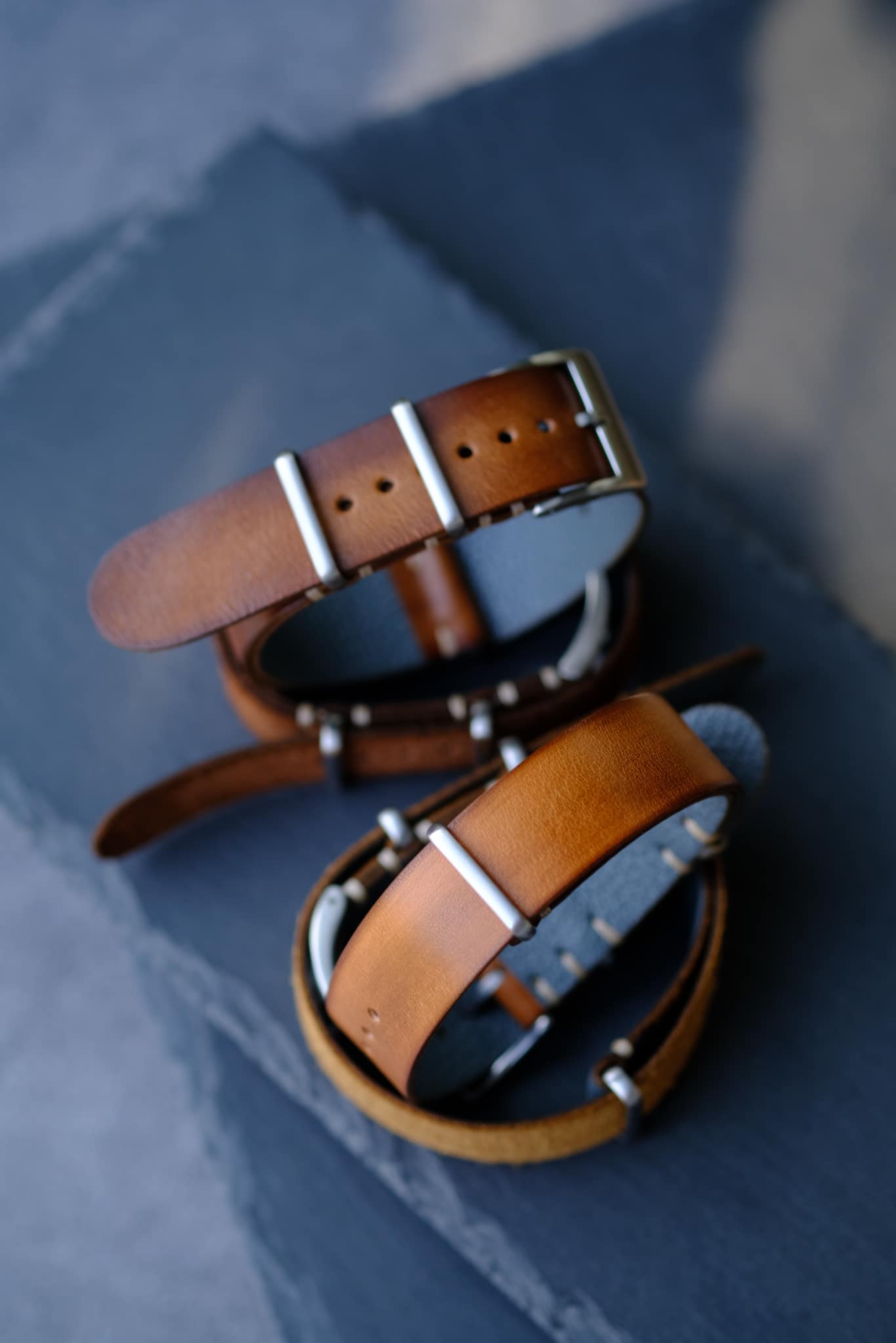 Siena Field läderrem är tillverkad av premium vegetabiliskt garvat läder och har en noggrant polerad yta som utvecklar karaktär med åldern. Den släta finishen har en subtil, raffinerad glans – diskret snarare än glansig – vilket skapar en elegant estetik som kompletterar både klassiska och moderna stilar. Denna naturliga garvningsmetod säkerställer hållbarhet samtidigt som den låter lädret patina graciöst med tiden, vilket gör varje rem unikt.